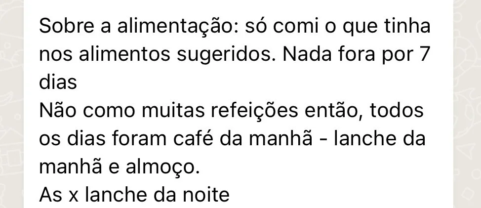 Cardápio com 5 refeições diárias. Resultado sem fome.